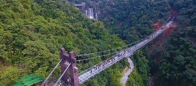懸空玻璃平臺(tái)全長(zhǎng)202米,以72米的懸空跨度名列世界第一,為美國(guó)科羅拉多大峽谷的U形橋(21米)的3.5倍;點(diǎn)睛之筆是平臺(tái)頂部直徑16.8米的玻璃觀景圓臺(tái),這是和瀑布親密接觸的絕佳位置。圓臺(tái)中間獨(dú)具匠心地設(shè)計(jì)了網(wǎng)格狀鏤空,山風(fēng)穿透,頓生寒意;踏步其上,如墜深淵,令人心驚膽寒。