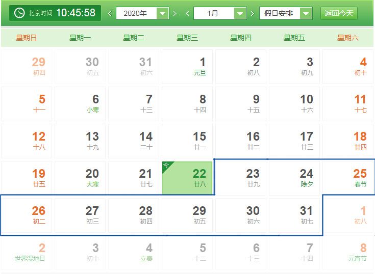 2020年春節(jié)期間,我公司放假時間為2020年1月23日(農(nóng)歷臘月二十九)至2020年1月31日(農(nóng)歷正月初七),2020年2月1日(農(nóng)歷正月初八)開始上班。春節(jié)放假期間,我公司暫停生產(chǎn)和服務(wù)工作,如有特殊事務(wù)請聯(lián)系我公司相關(guān)工作人員,帶來不便請您諒解。