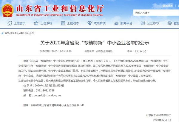 根據(jù)《山東省“專精特新”中小企業(yè)認(rèn)定管理辦法》(魯工信發(fā)〔2020〕7號)、《關(guān)于組織申報2020年度山東省“專精特新”中小企業(yè)和對往年“專精特新”中小企業(yè)進行復(fù)核的通知》等文件精神,省工業(yè)和信息化廳組織開展了2020年度省級“專精特新”中小企業(yè)評選工作。經(jīng)主管部門推薦、專家評審等程序,確定我公司為2020年度省級“專精特新”中小企業(yè)。