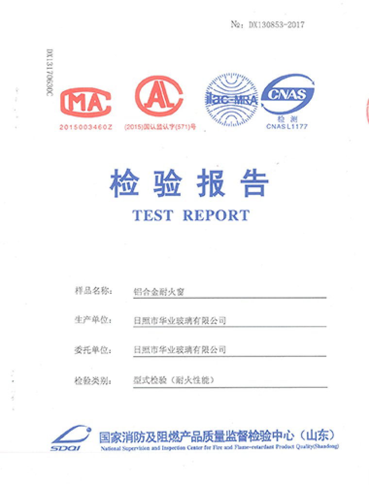 鋁合金耐火窗檢測報(bào)告