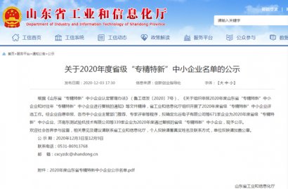 根據(jù)《山東省“專精特新”中小企業(yè)認定管理辦法》(魯工信發(fā)〔2020〕7號)、《關于組織申報2020年度山東省“專精特新”中小企業(yè)和對往年“專精特新”中小企業(yè)進行復核的通知》等文件精神,省工業(yè)和信息化廳組織開展了2020年度省級“專精特新”中小企業(yè)評選工作。經(jīng)主管部門推薦、專家評審等程序,確定我公司為2020年度省級“專精特新”中小企業(yè)。