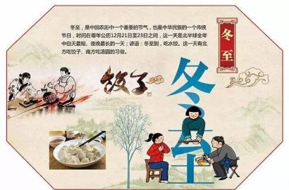 二十四節(jié)氣中的第二十二個(gè)節(jié)氣。進(jìn)入冬至節(jié)氣這一天,太陽(yáng)直射南回歸線,北半球白天最短,黑夜最長(zhǎng),數(shù)九寒天從此開始。